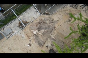 Quelle: Die Fundamente der Moritzkirche (Spandau Moritzkirche 11.2023 Planum Maßstab) – Block 2.3 Rekonstruktion Einen besonders guten Überblick über die freigelegten Fundamente der Moritzkirche liefert die Vogelperspektive. Für dieses Bild wurden mehrere Drohnen