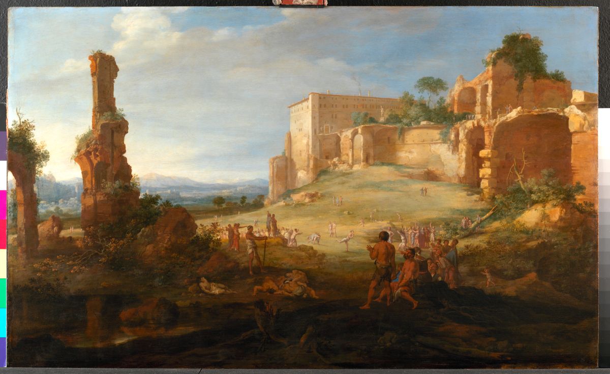 Ganz anders der in Deventer geborene Bartholomeus Breenbergh. Der Maler, der jung nach Italien gelangte, zeigt die beiden als Miniaturfiguren eingebettet in eine von antiken Gebäuden gerahmte Landschaft. Erst auf den zweiten Blick wird offenbar, welche antike Geschichte hier überhaupt gemeint ist. Durch die geschickte Beleuchtungssituation und die Positionierung der Protagonisten – wenngleich nur als kleine Figuren – in der Mitte, gelingt dem Künstler eine überzeugende Neuinterpretation der mythologischen Geschichte. Mythos und Natur werden zu einer Einheit zusammengefasst. Breenbergh gehört damit zu den Begründern der sogenannten heroischen Landschaft.