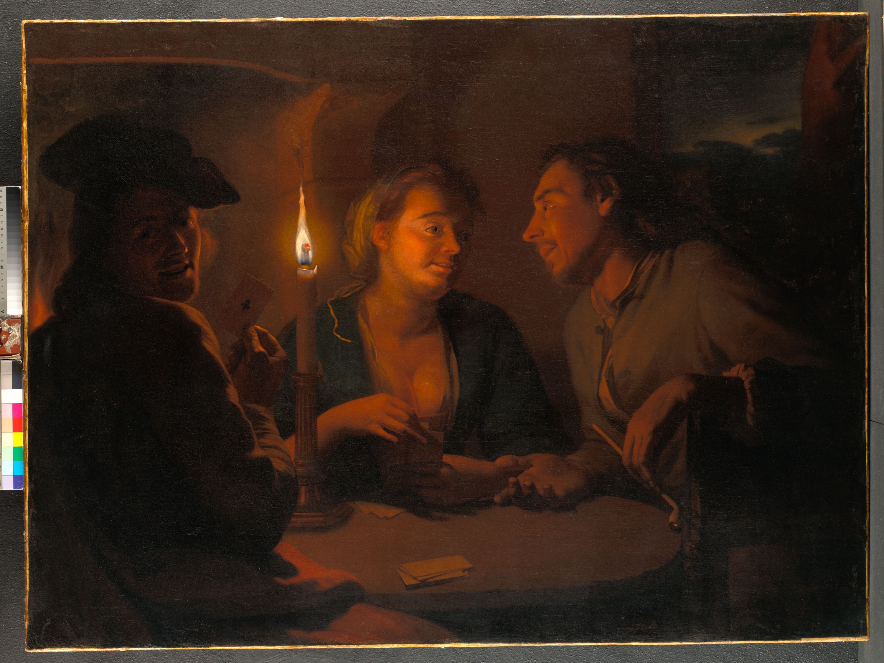 Durch die großzügige Förderung des Museumsvereins Kassel ist es gelungen, ein wichtiges Gemälde von Godfried Schalcken für die Gemäldegalerie Alte Meister zurückzuerwerben. Landgraf Wilhelm VIII. war ein eifriger Sammler des Künstlers. 11 Gemälde befanden sich in seiner Sammlung, von denen jedoch über die Hälfte in napoleonischer Zeit verloren ging. Das zurückgekehrte Gemälde ist eines der größten des Künstlers. Es zeigt drei Personen beim nächtlichen Kartenspiel in meisterhafter Lichtregie.