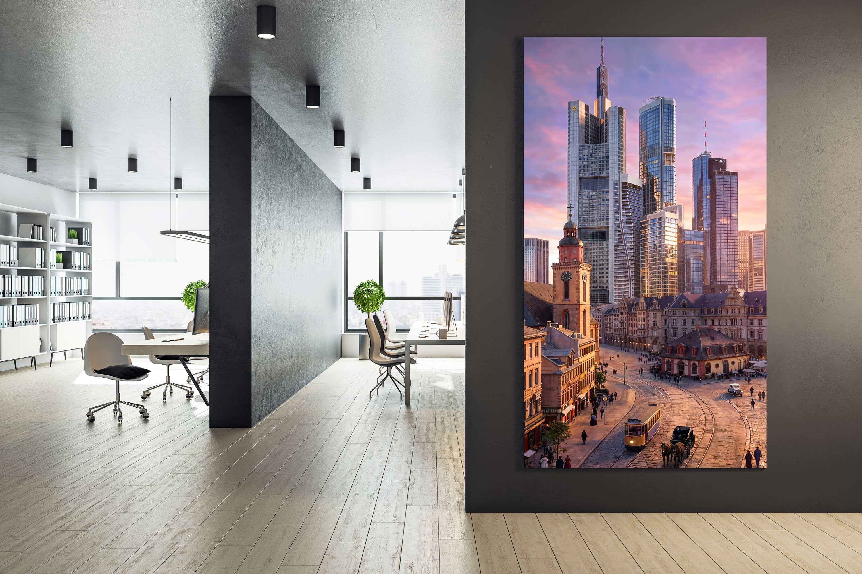 Wer in diesen Tagen durch Frankfurter Büros geht, erlebt häufig eine ähnliche Szene: Besucher betreten den Raum, der Blick wandert kurz durch den Empfangsbereich und bleibt an der Wand hängen.