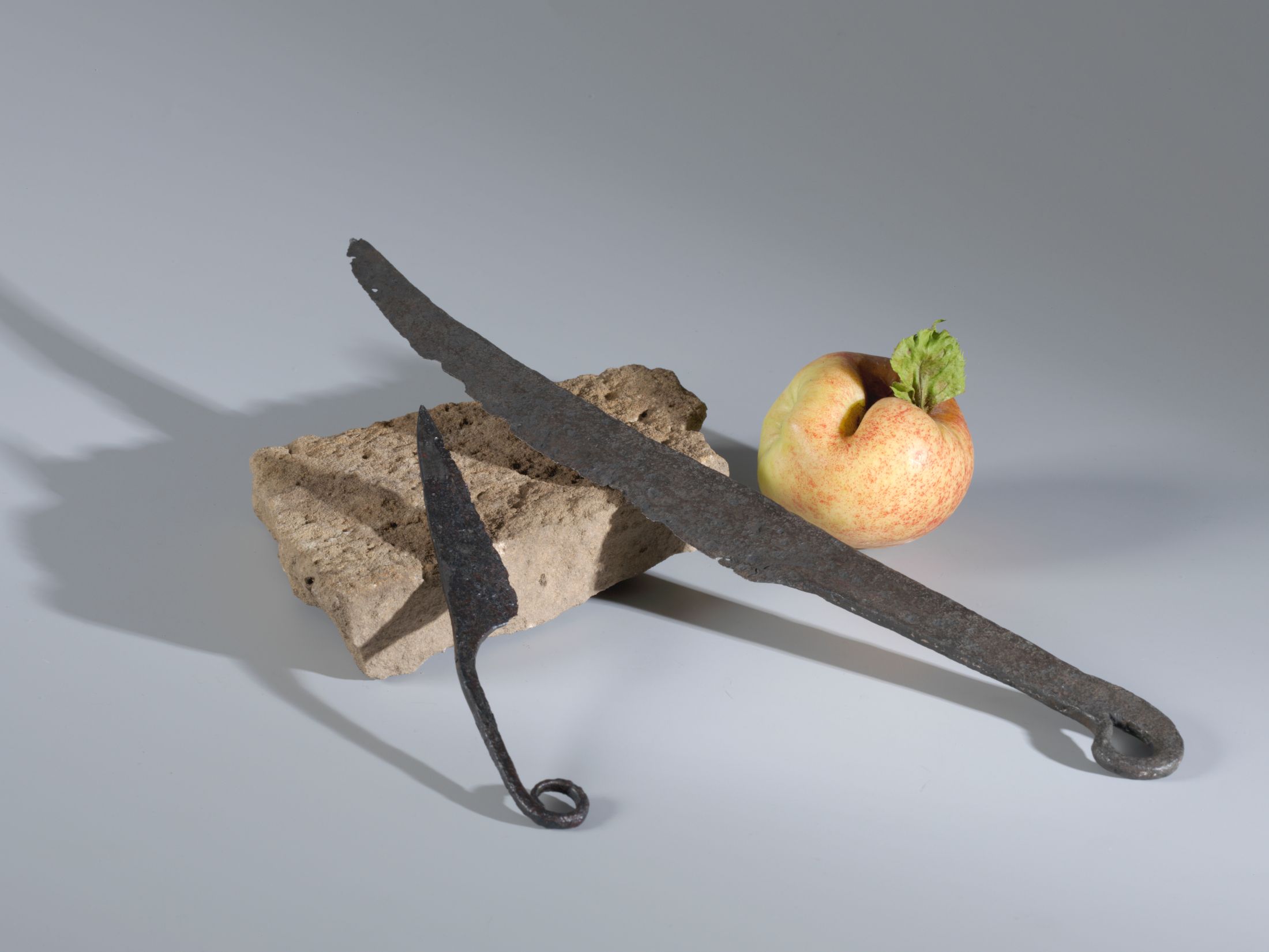 Schon früh erlernten unsere Vorfahren die Fertigung von Schneidwerkzeugen. Anfangs aus Stein, später aus Bronze und schließlich aus Eisen entwickelten die Menschen unterschiedlichste Schneidgeräte vom Faustkeil bis zum Eisenmesser. Die Führung folgt ihrer Spur durch die Jahrtausende.