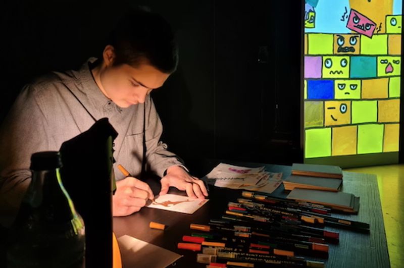 Die in Stuttgart ansässige Animationsfilmerin Monika Nuber erweckt die Comics in Zusammenarbeit mit Kastuś zum Leben, während Georgia Koumará die begehbare Installation in eine 40-minütige Klangnarration einbettet. Das Ergebnis ist ein eindrucksvolles Plädoyer für Vorstellungskraft, Freiheit und gegenseitige Aufmerksamkeit.