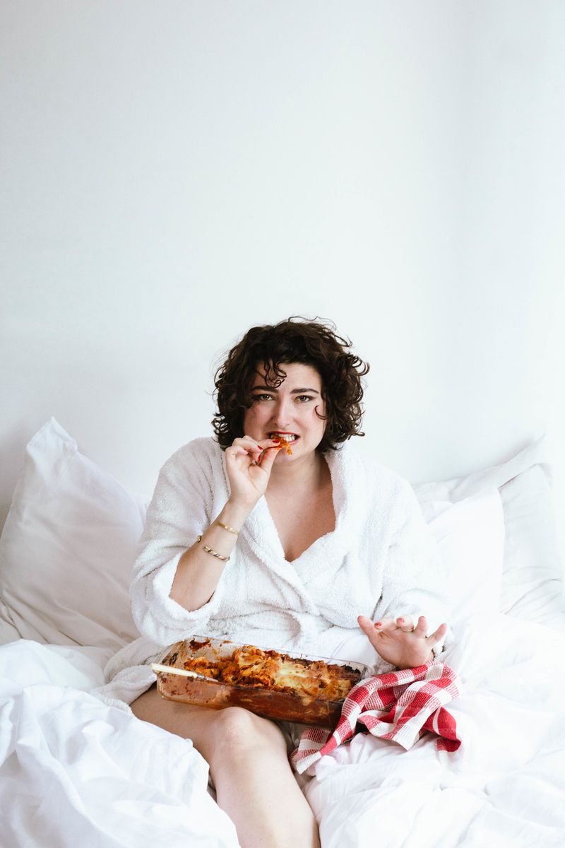 „Lasagne im Bett“ ist was Falsches, aber zu gut um aufzuhören. Es ist der Tomatensoße-Fleck auf der Bettdecke. Es ist überbackener Käse zum Frühstück: Es ist einfach all das, was man sich sonst nicht traut, zu erlauben.
